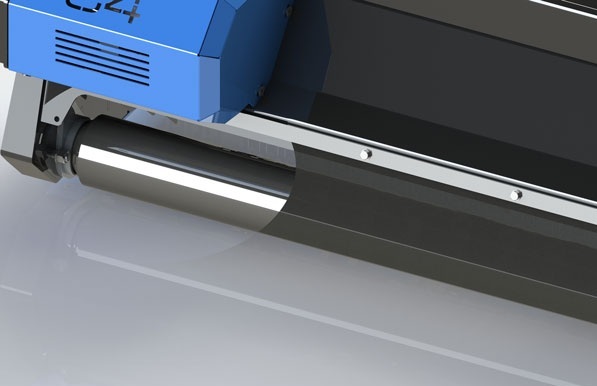 Rouleau d’appui arrière réglable sur 3 positions pour régler la hauteur de coupe. Bande de protection arrière en caoutchouc anti-usure.