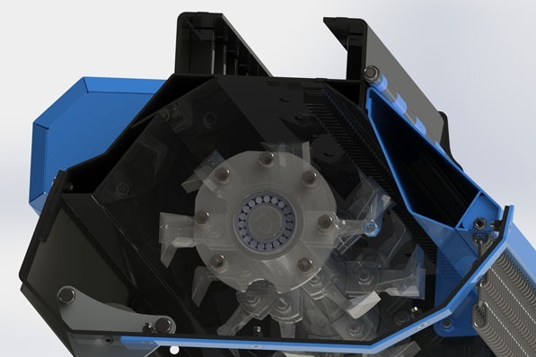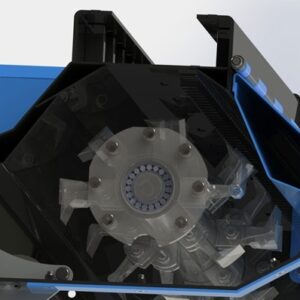 Rotor pouvant être équipé de couteaux pour une plus grande capacité de broyage et une puissance requise moindre. Rotor pouvant être équipé de marteaux pour traiter en toute sécurité les branches et les arbustes jusqu’à 75 mm. Jeu de couteaux à 3 lames.