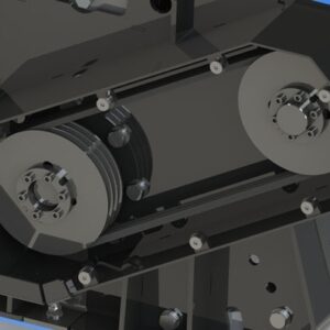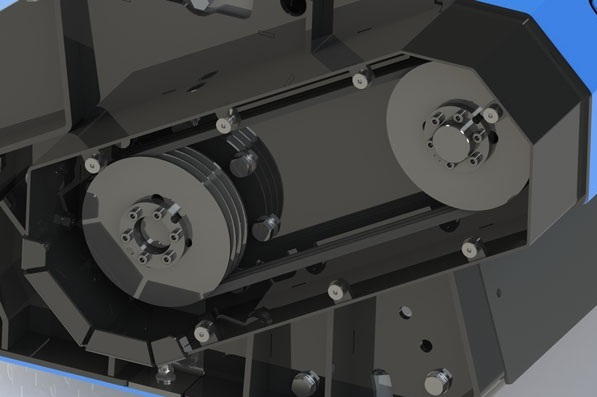 Moteur monté sur une extension avec roulements pour éviter une usure prématurée, avec carter de protection contre les chocs. Transmission finale par courroie, indispensable pour les applications où les puissances transmises commencent à devenir importantes, grâce à la fonction d’accouplement élastique qui permet de préserver à la fois le moteur et le rotor des contraintes imprévues.