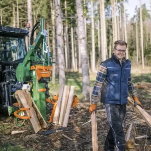 Idéal pour le bois d’un mètre. Avec le système Fixomatic ou la pointe de retenue du bois, le bois peut être fixé en amont du procédé de fendage sans devoir le maintenir. Le dispositif de levage des grumes de série place les grumes lourdes en position et veille à un fendage respectueux du dos et confortable.