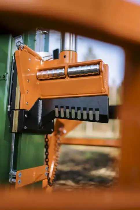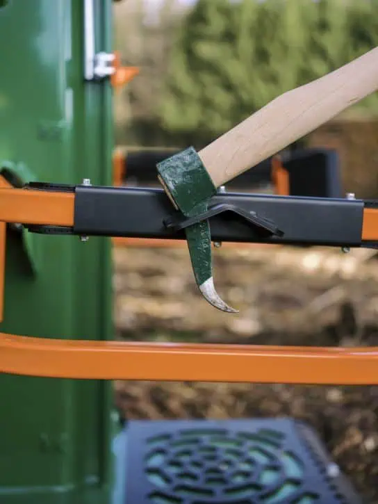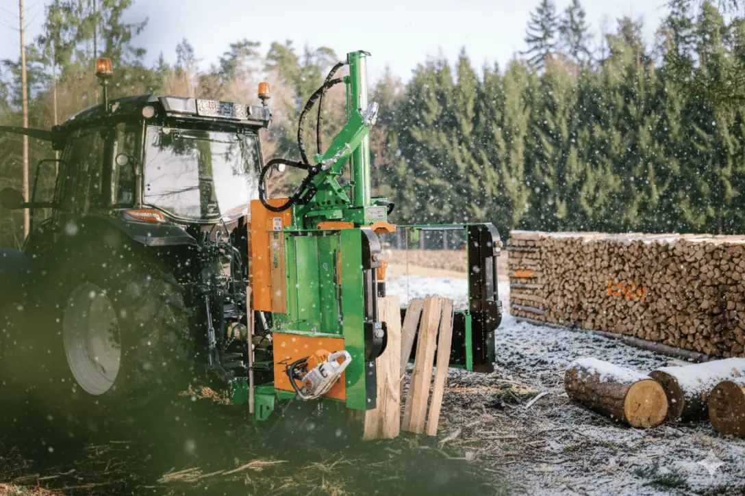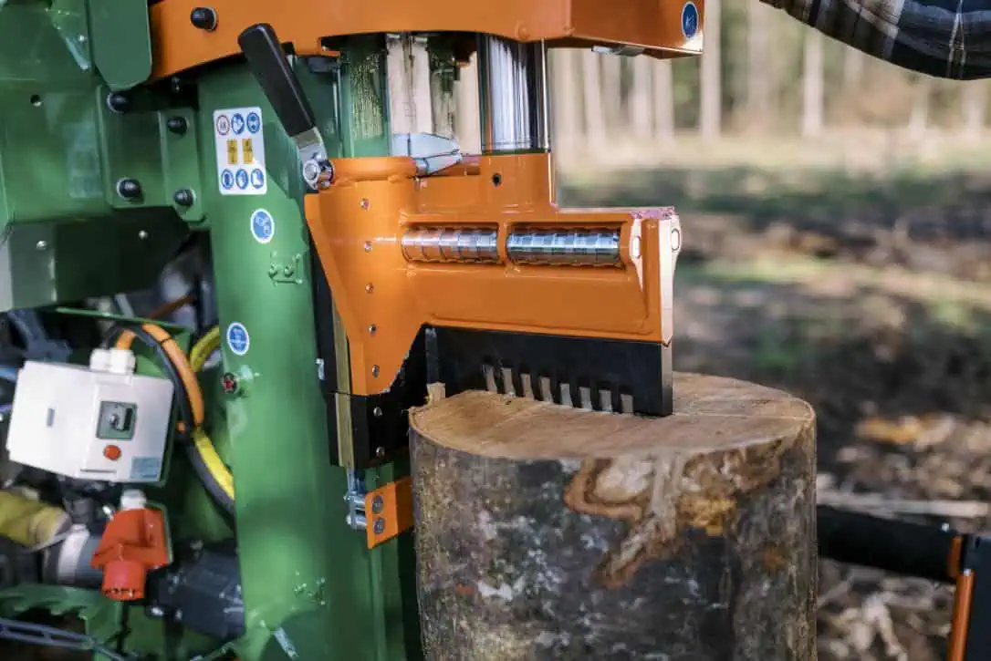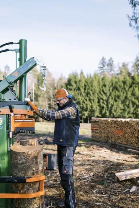 Idéal pour le bois d’un mètre. Avec le système Fixomatic ou la pointe de retenue du bois, le bois peut être fixé en amont du procédé de fendage sans devoir le maintenir. Le dispositif de levage des grumes de série place les grumes lourdes en position et veille à un fendage respectueux du dos et confortable.